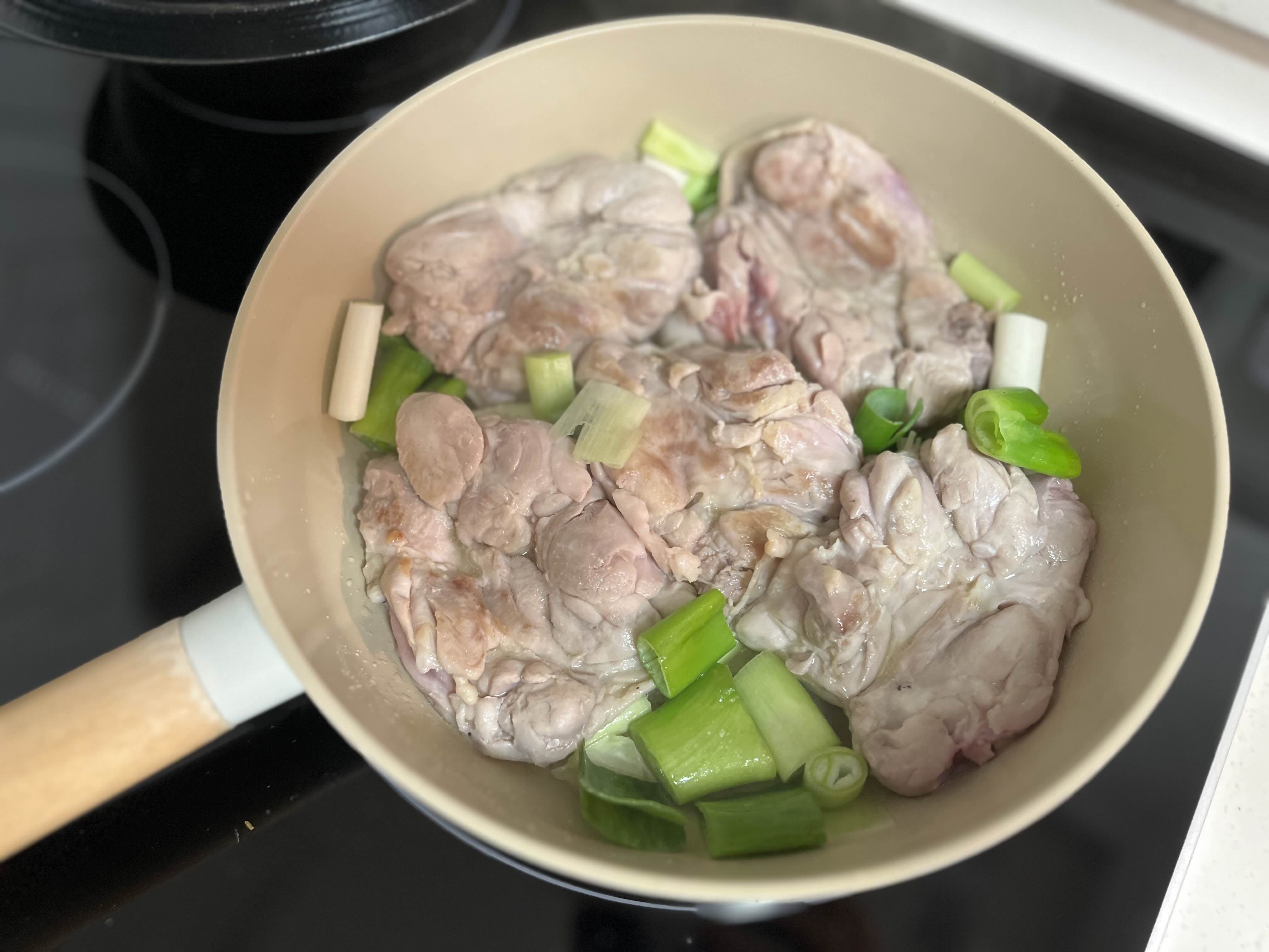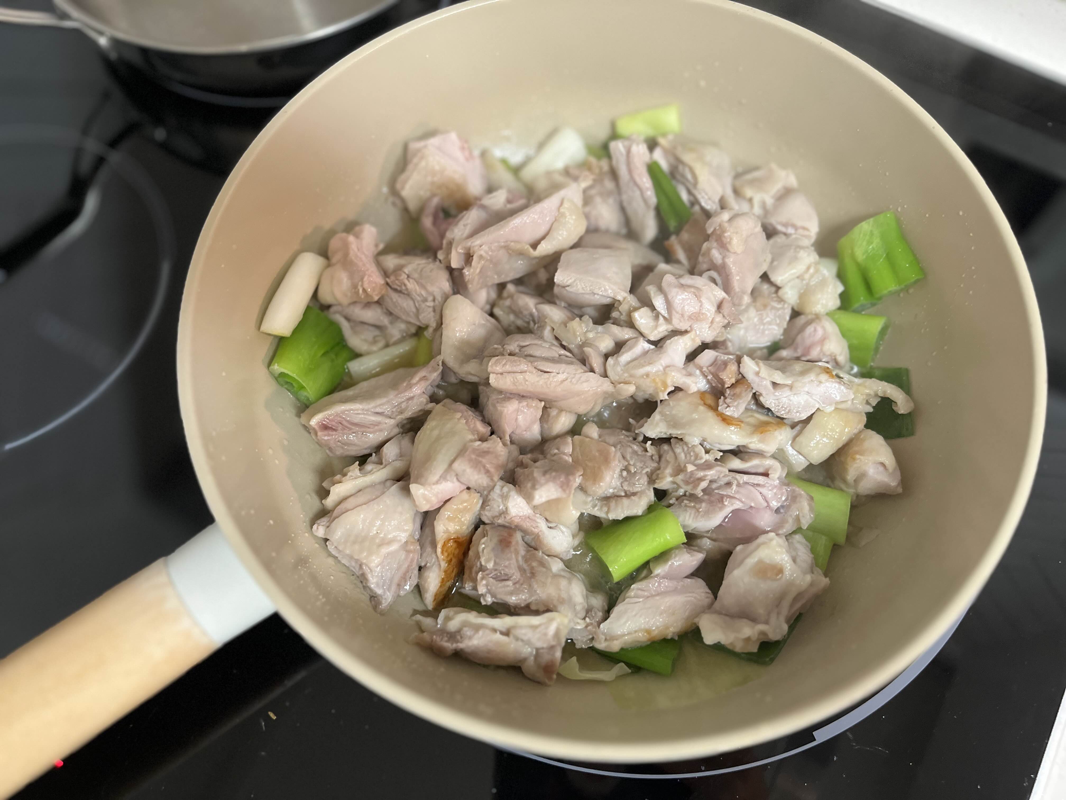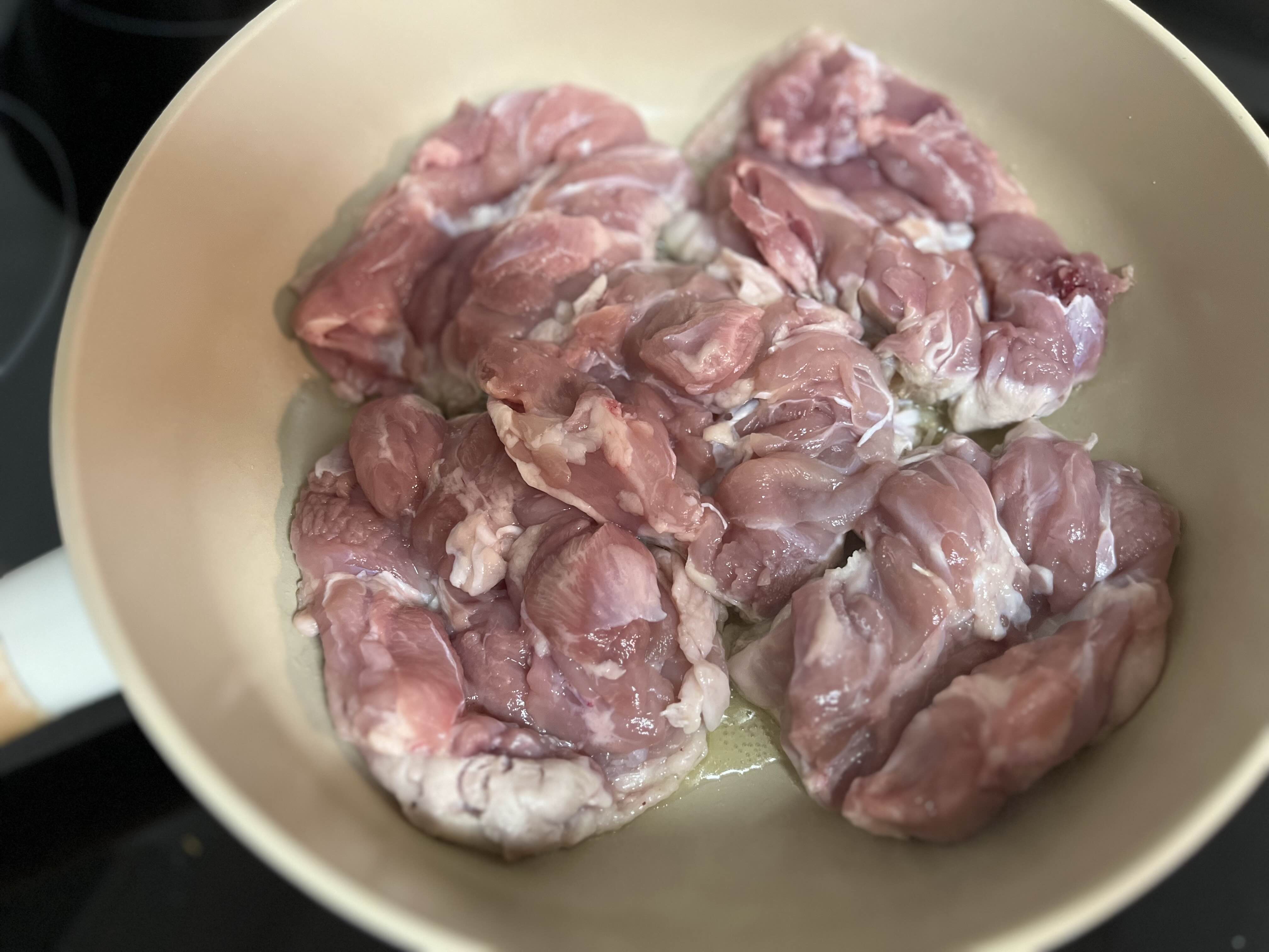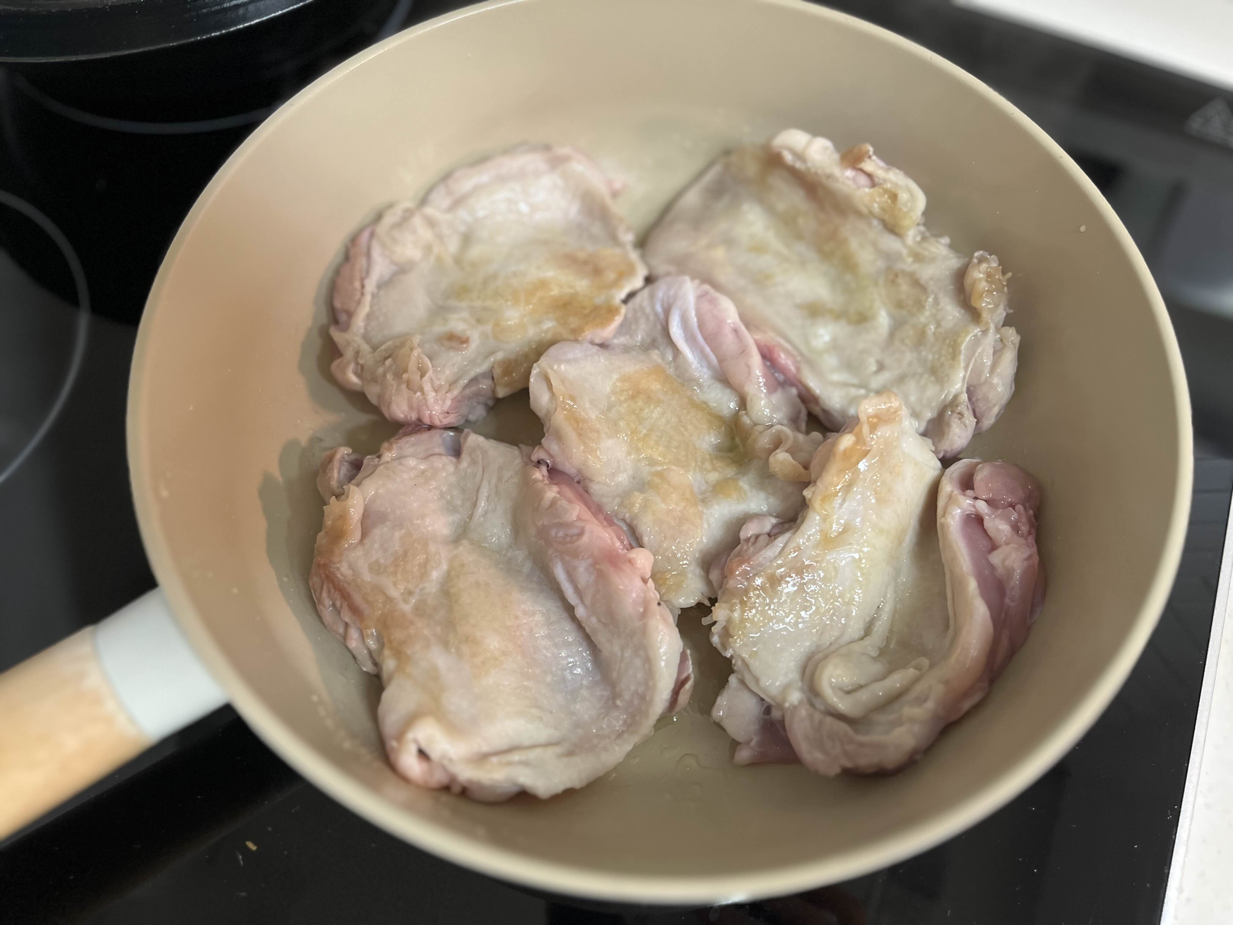 3. 팬에 닭정육 껍질부터 구워줍니다