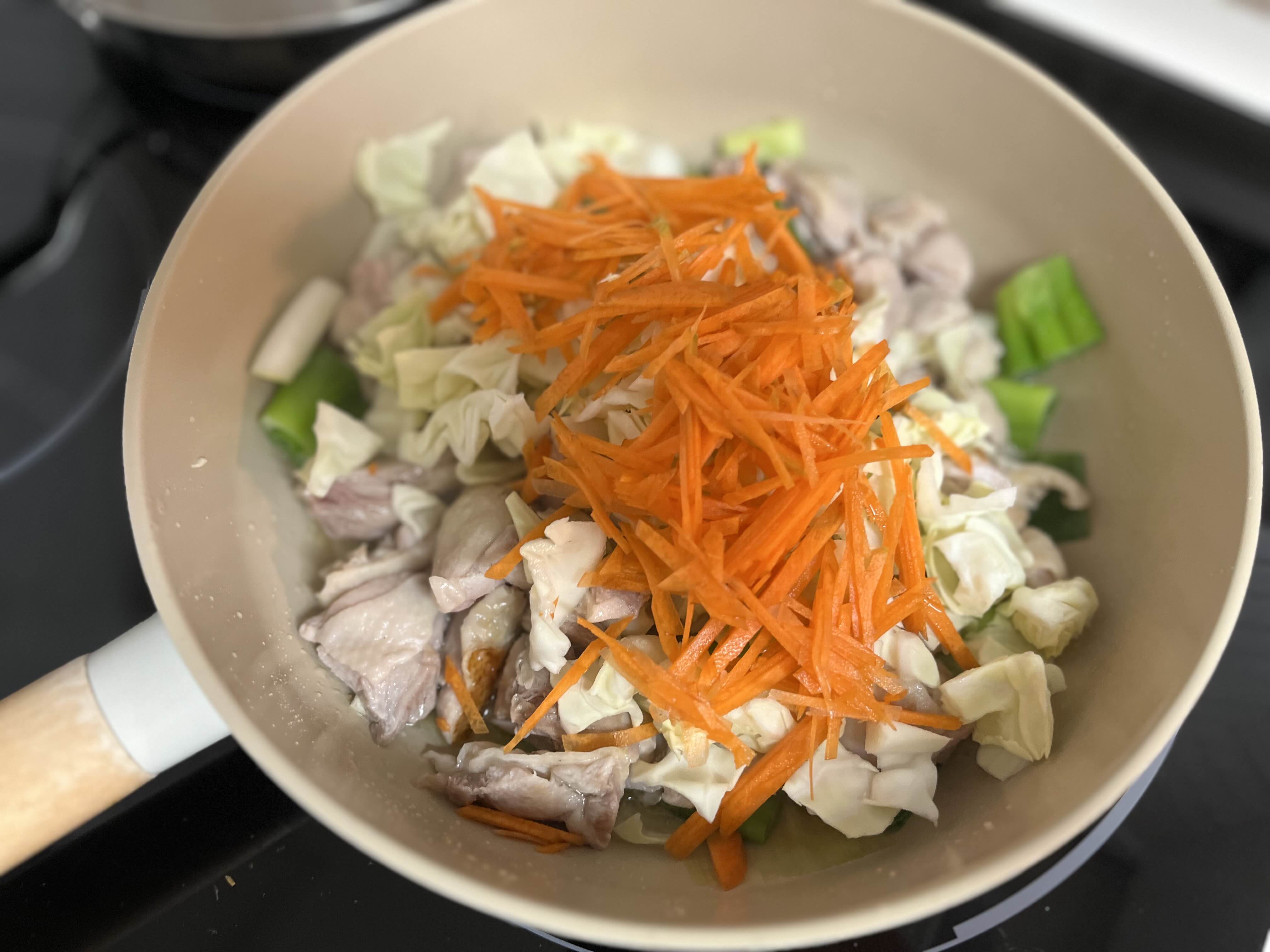 2. 파는 필수 , 양배추, 당근 썰어주세요