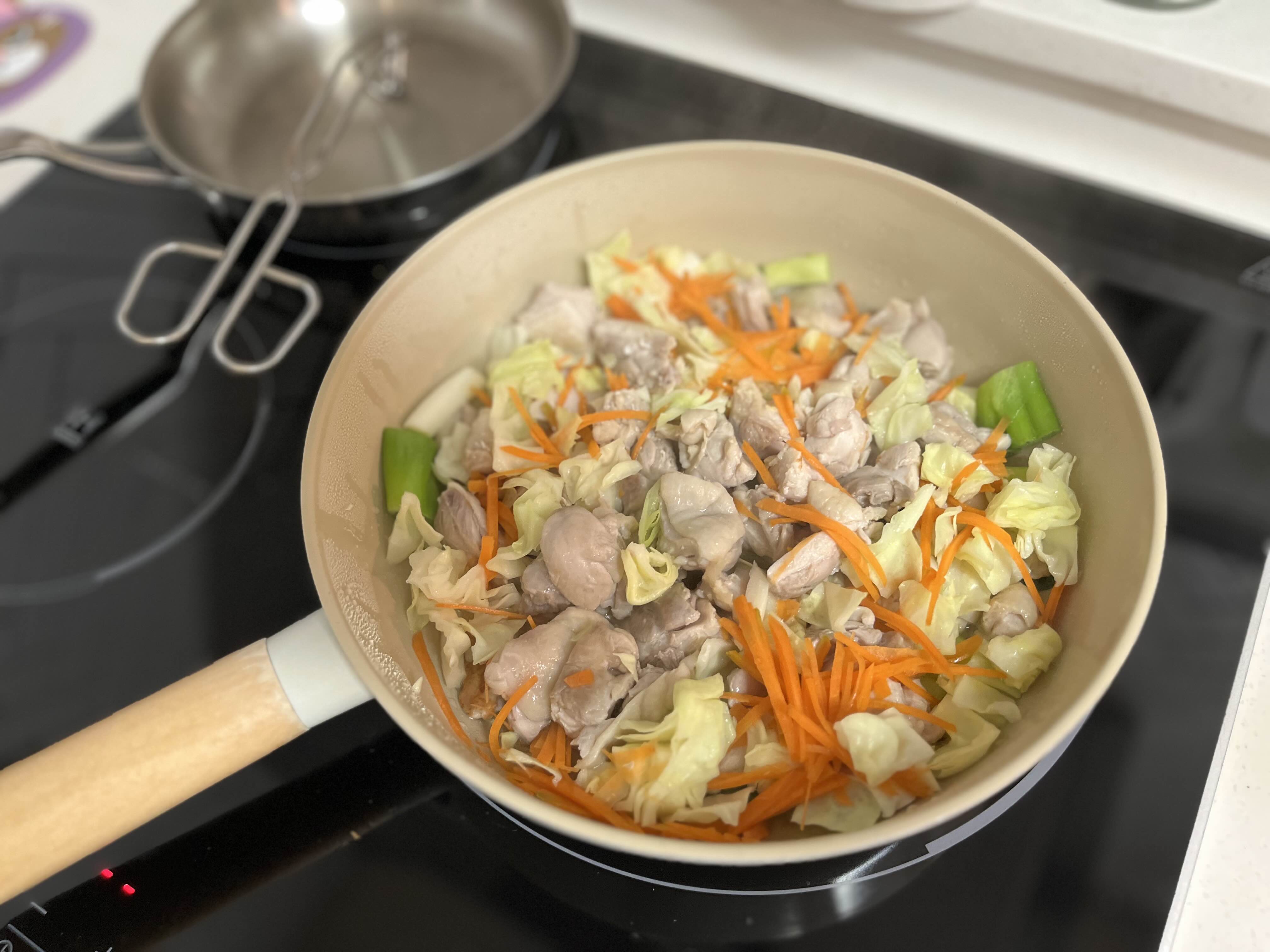 5. 손질해둔 야채 넣고 뚜껑 닫아 충분히 익혀주세요