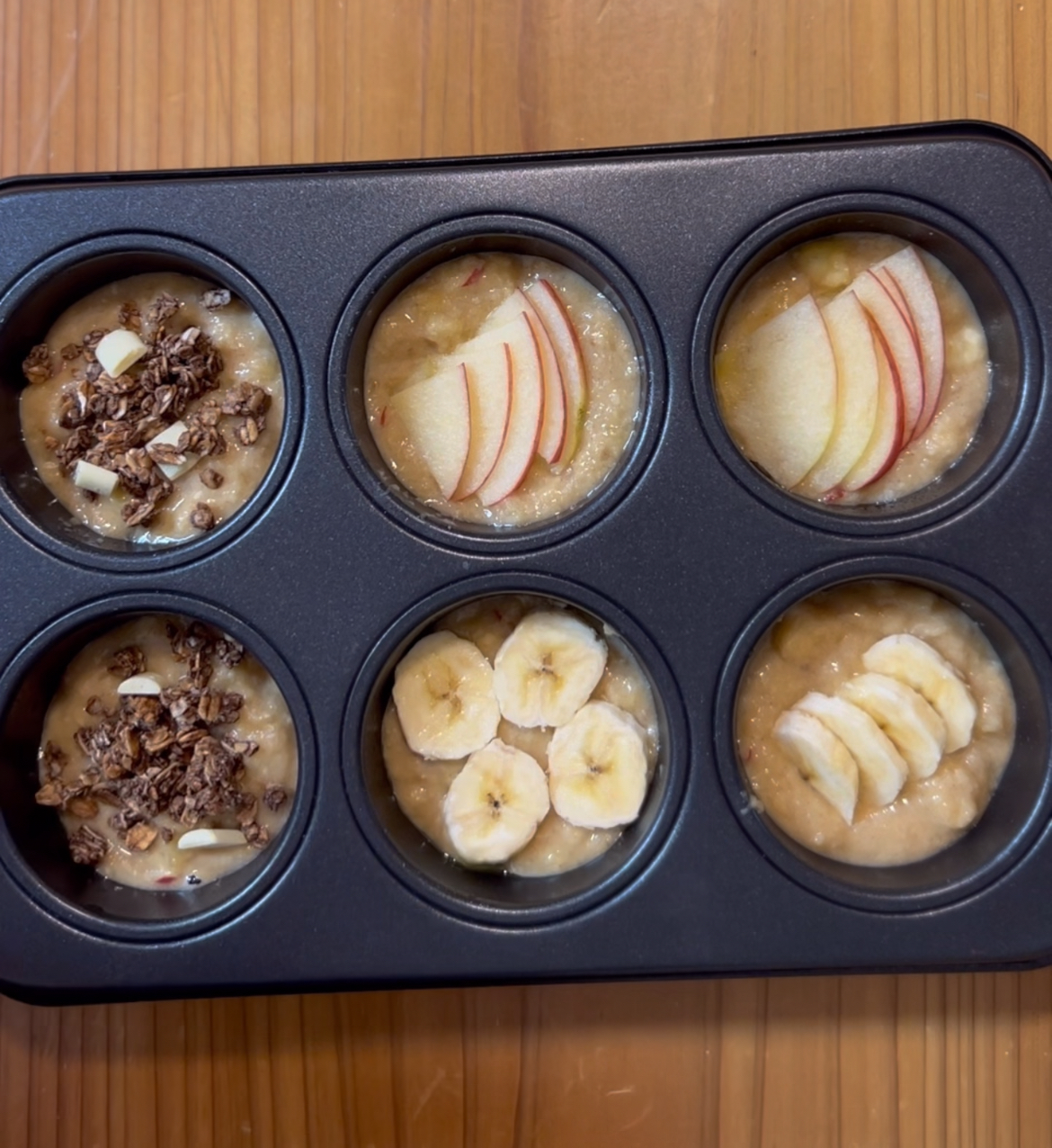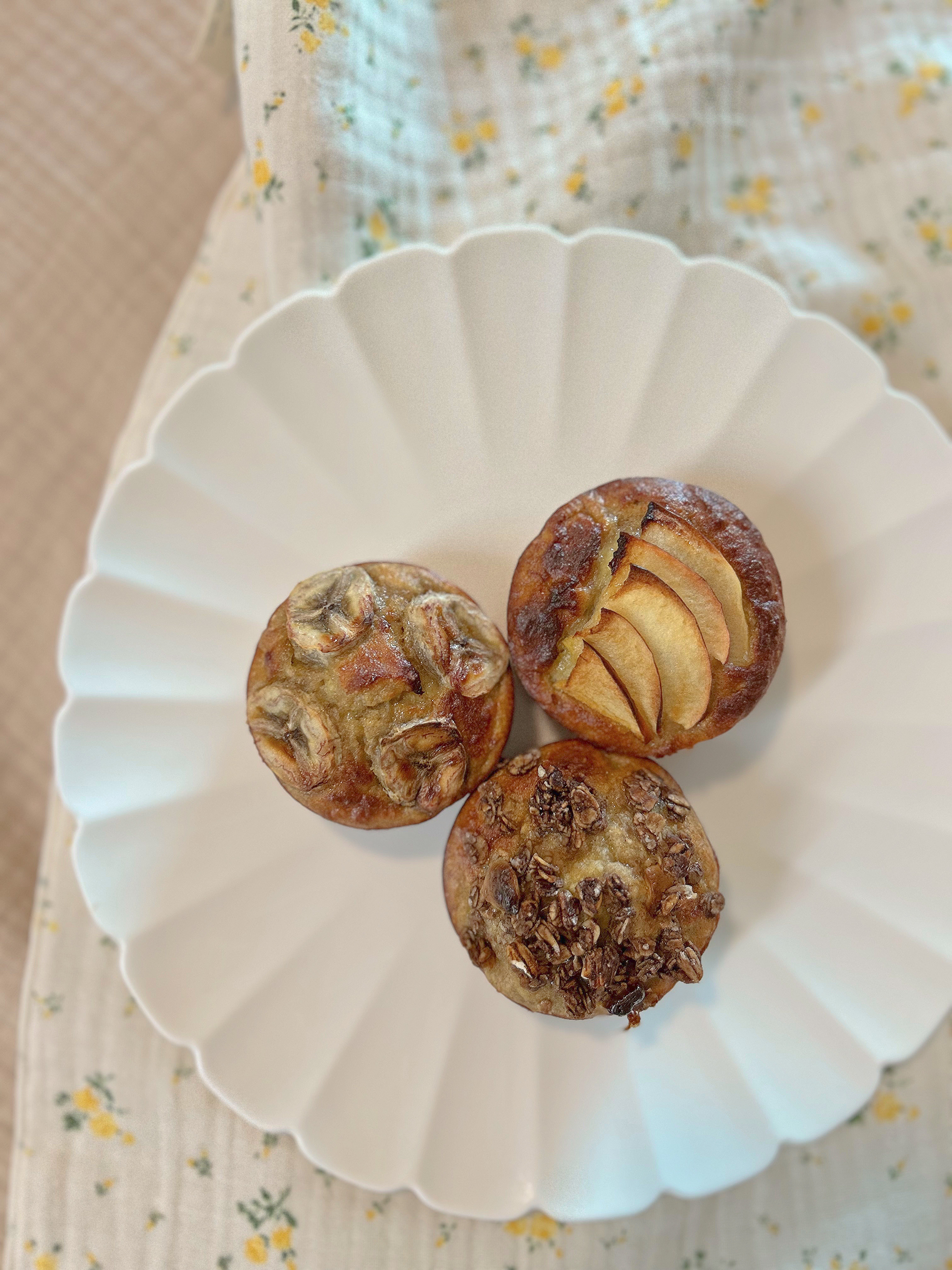 5. 반죽부어 준비해둔 데코용과일 올려줍니다
