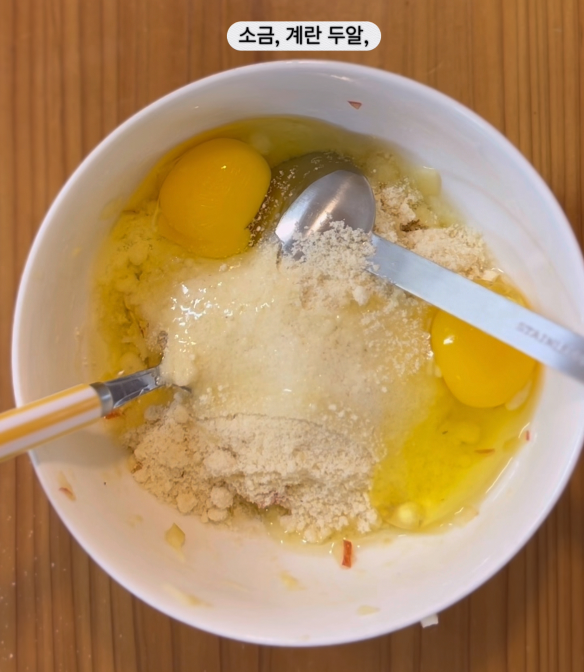3. 으깬 바나나에 아몬드가루, 소금, 계란,