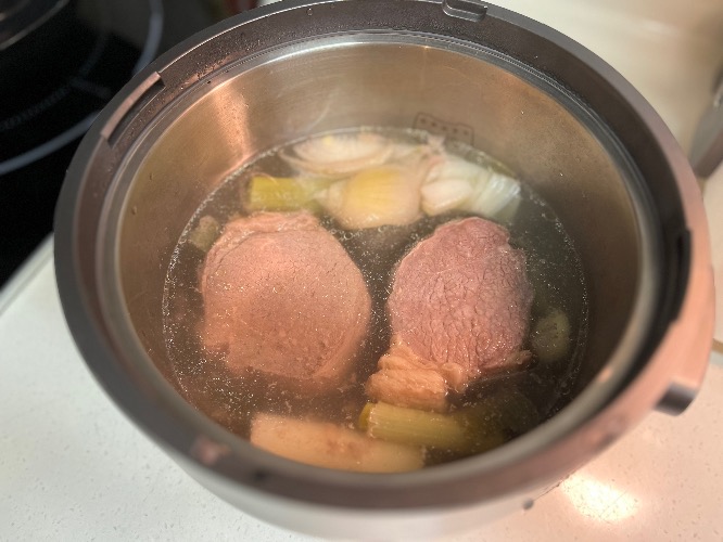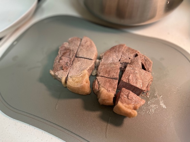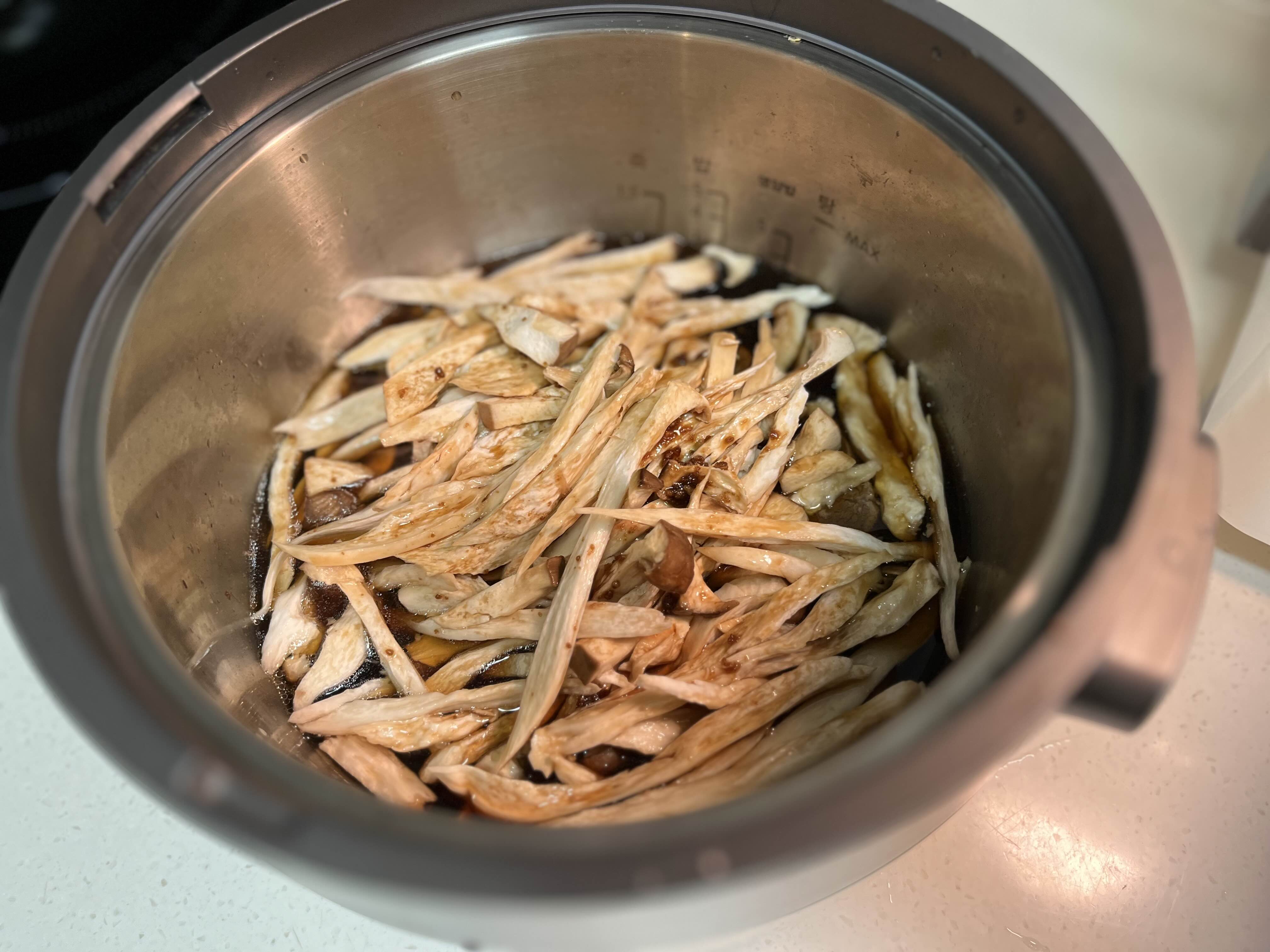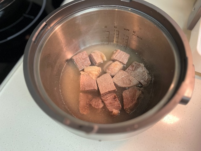 스팀팟 25분 끝나면 고기 덜어 간이 잘 베이게