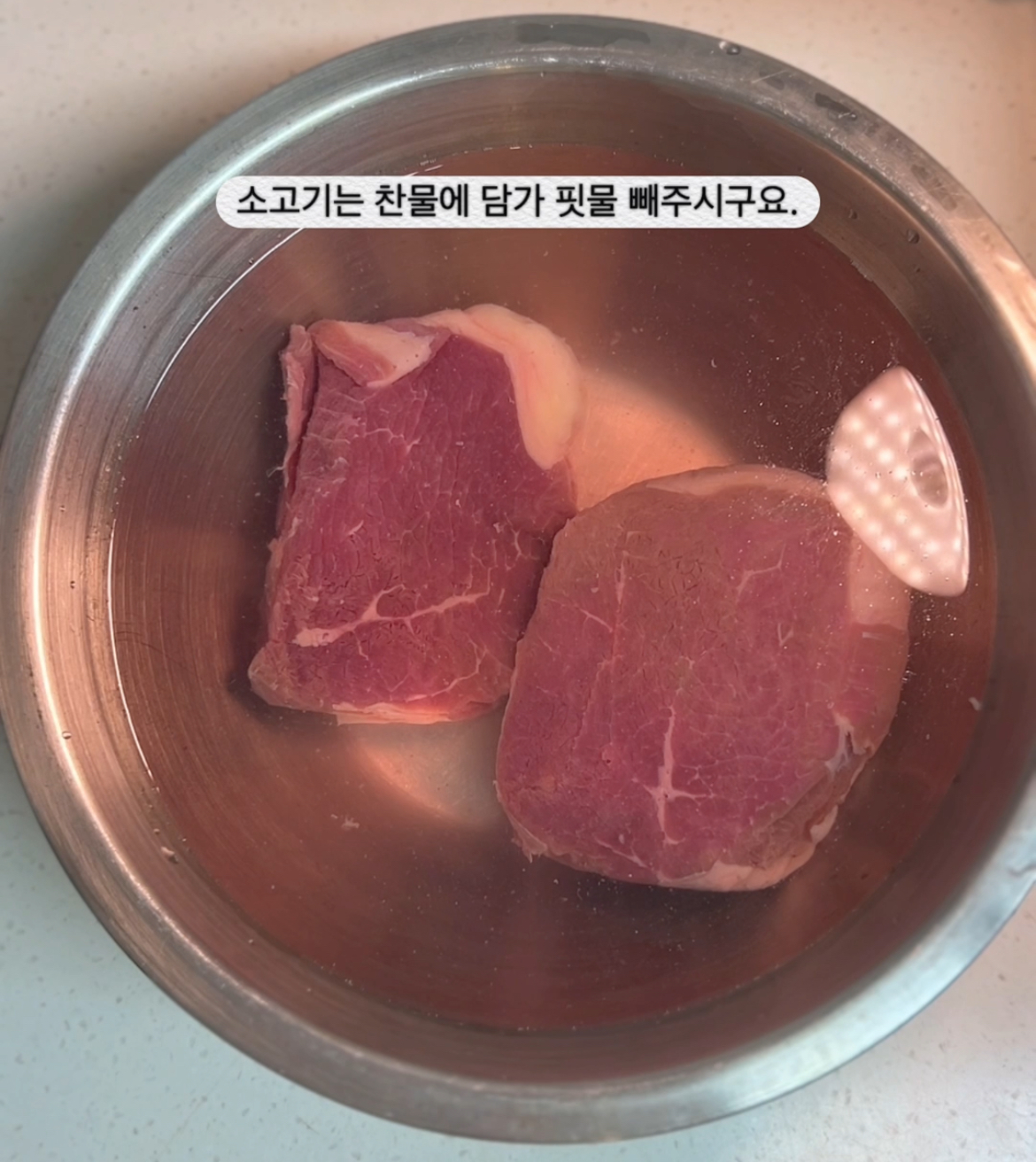 찬물에 담가 핏물 빼줍니다