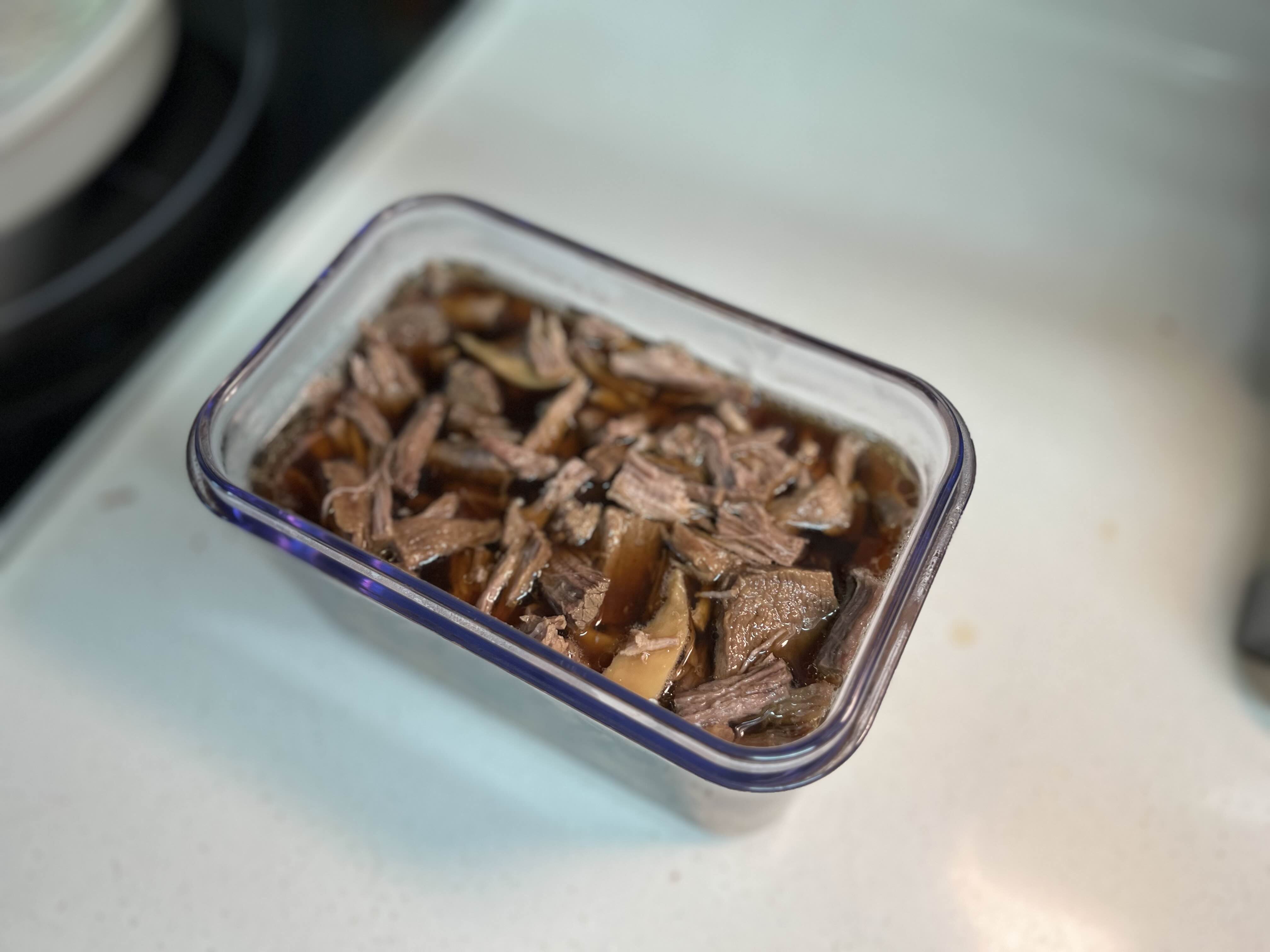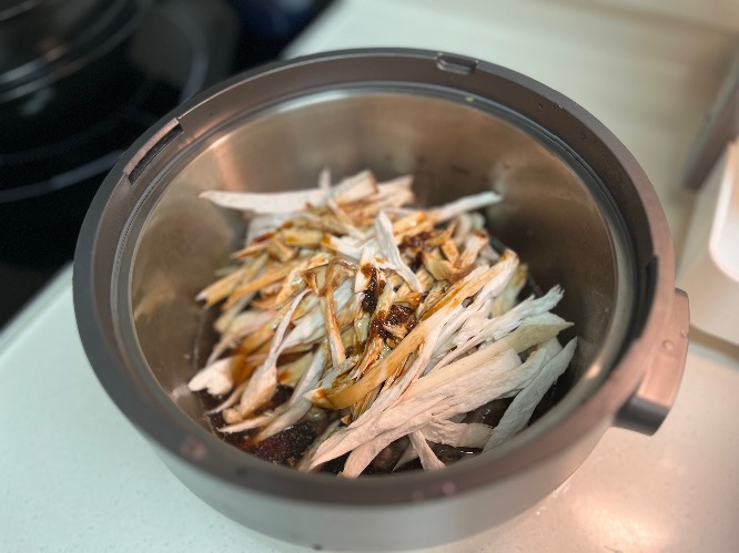 완료되면 고기 건져내어 찢어 담아주세요