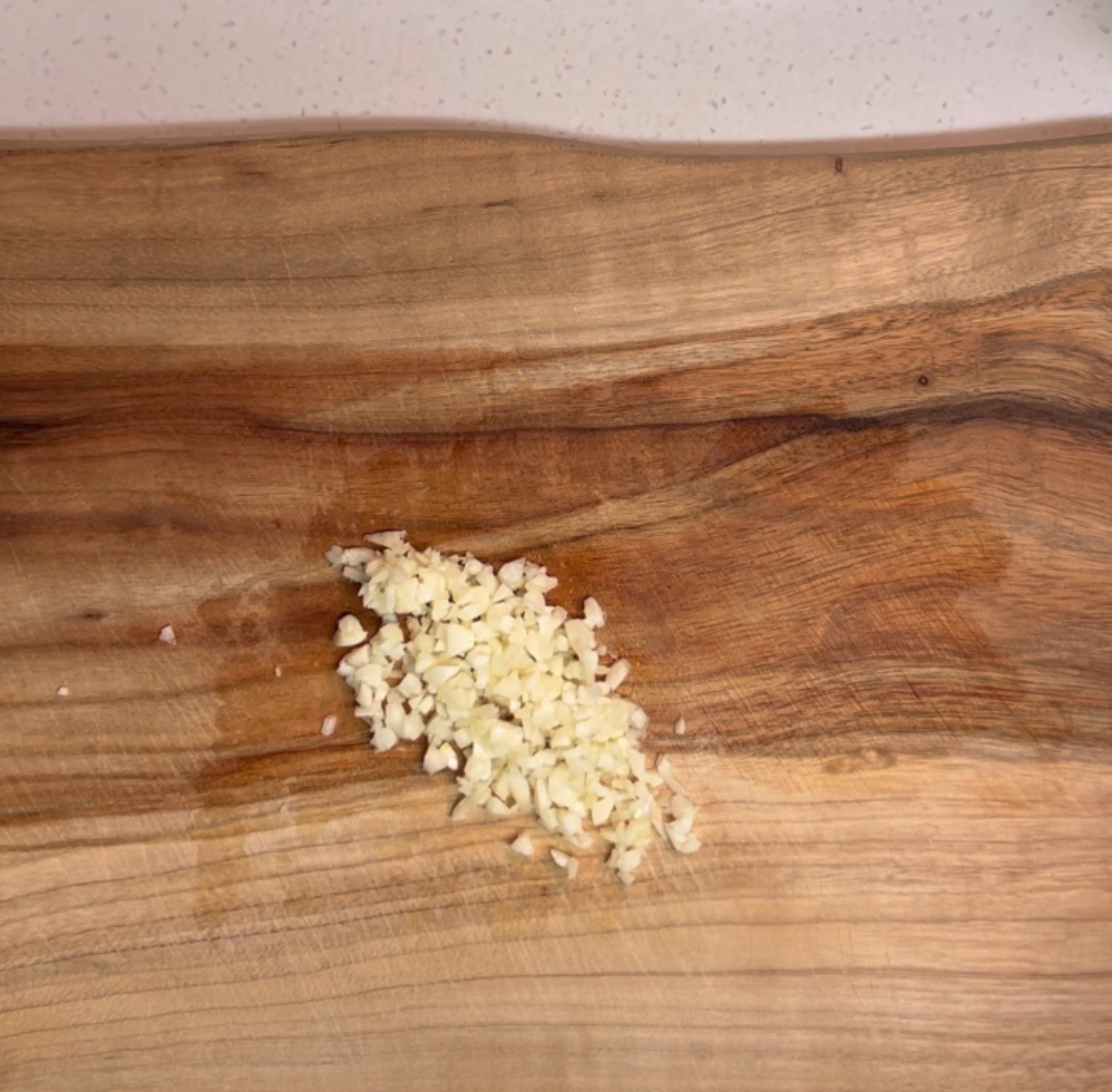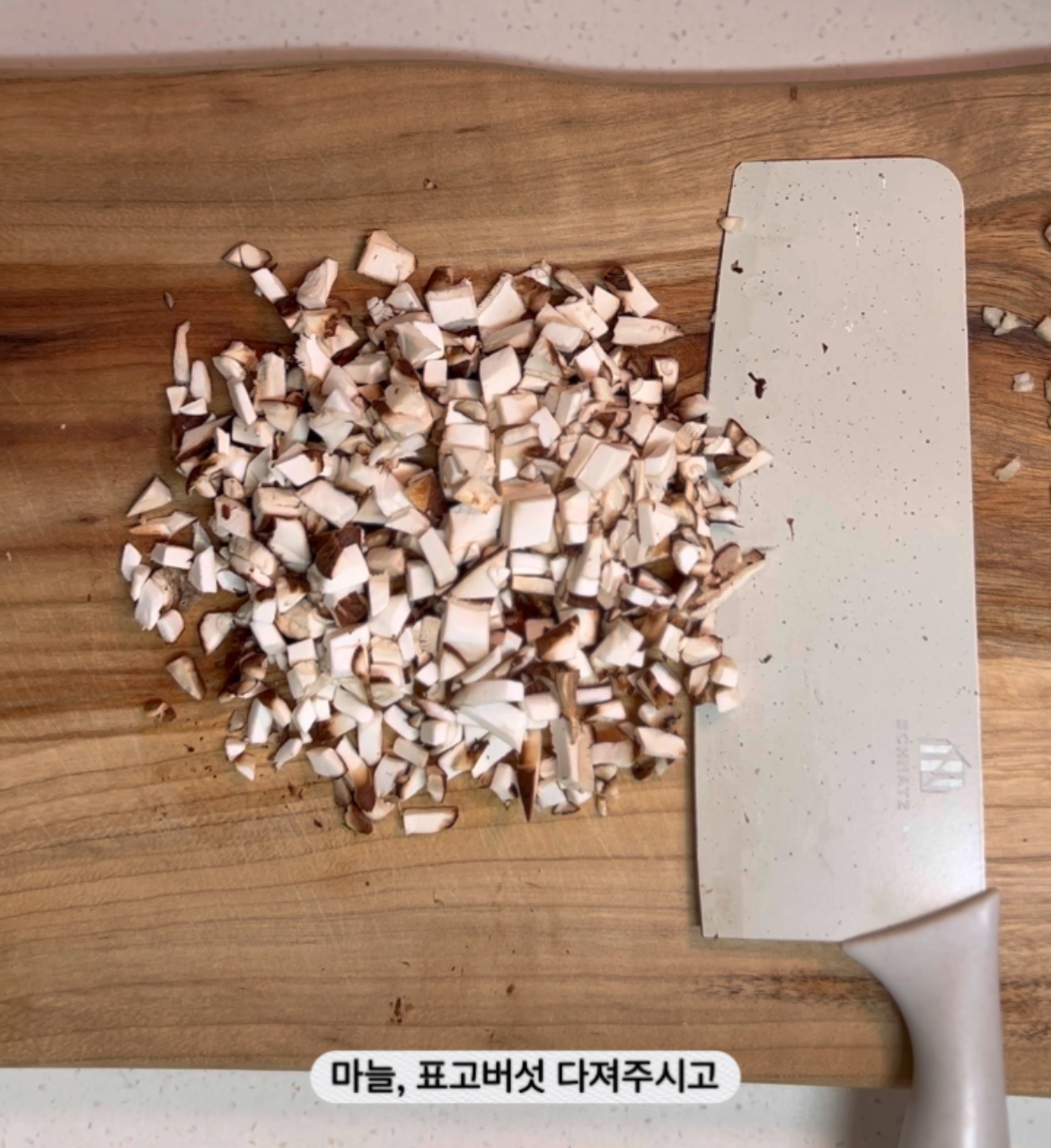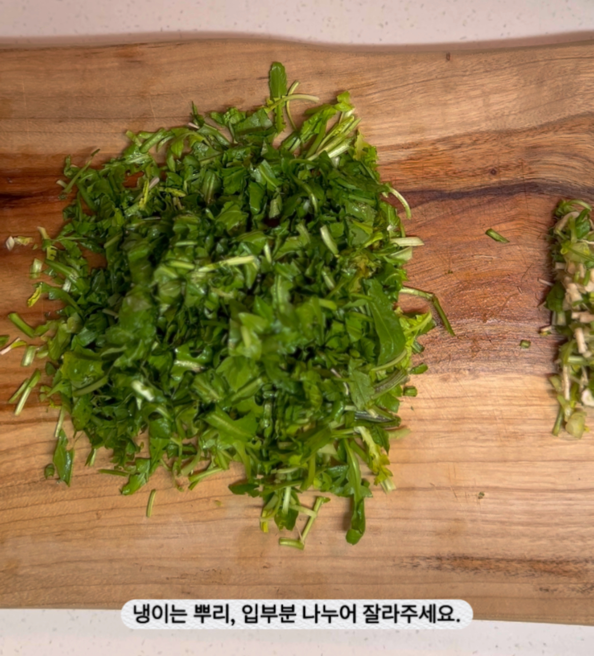 마늘 3톨 , 표고버섯 2개, 다져주시고 손질한 냉이는 뿌리부분과 잎부분 나누어 잘라주세요
