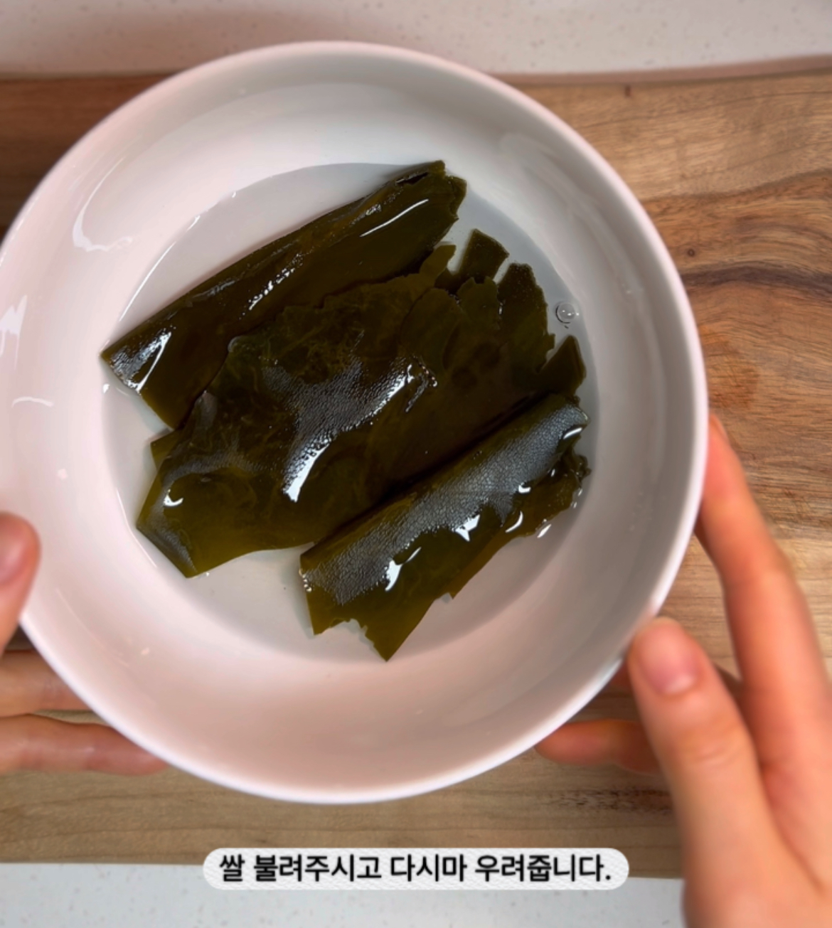 쌀2컵 깨끗이 씻어 30분이상 불려주시고 물2컵에 다시마 우려줍니다