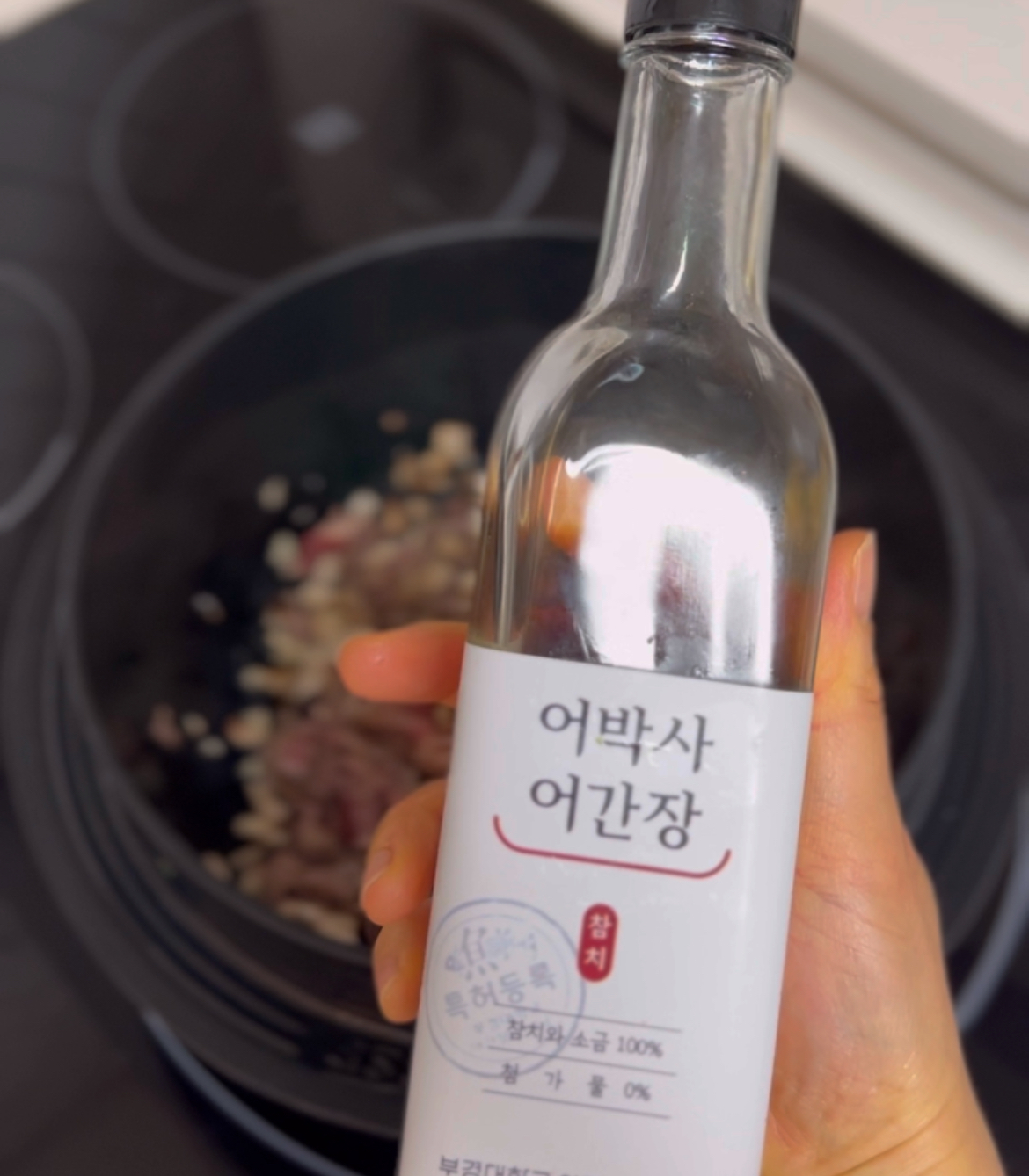양념 - 간장1T, 어간장1/2T, 메이플 1/2T (설탕, 알룰로스 대체가능)