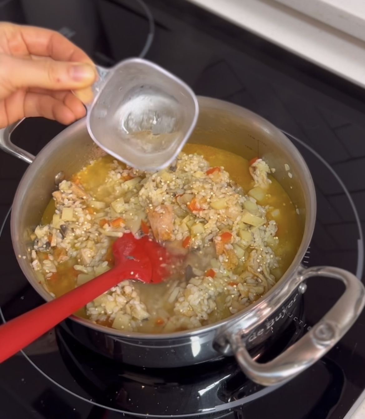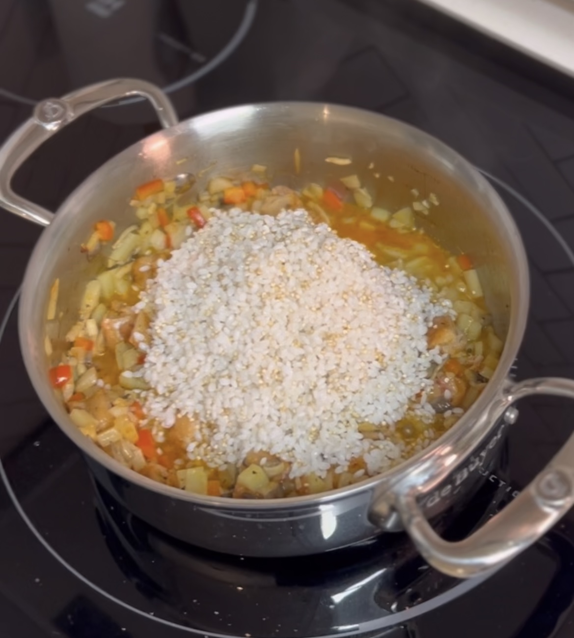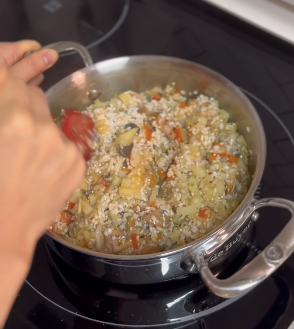 불려둔 쌀 1.5인분 추가하여 볶다가