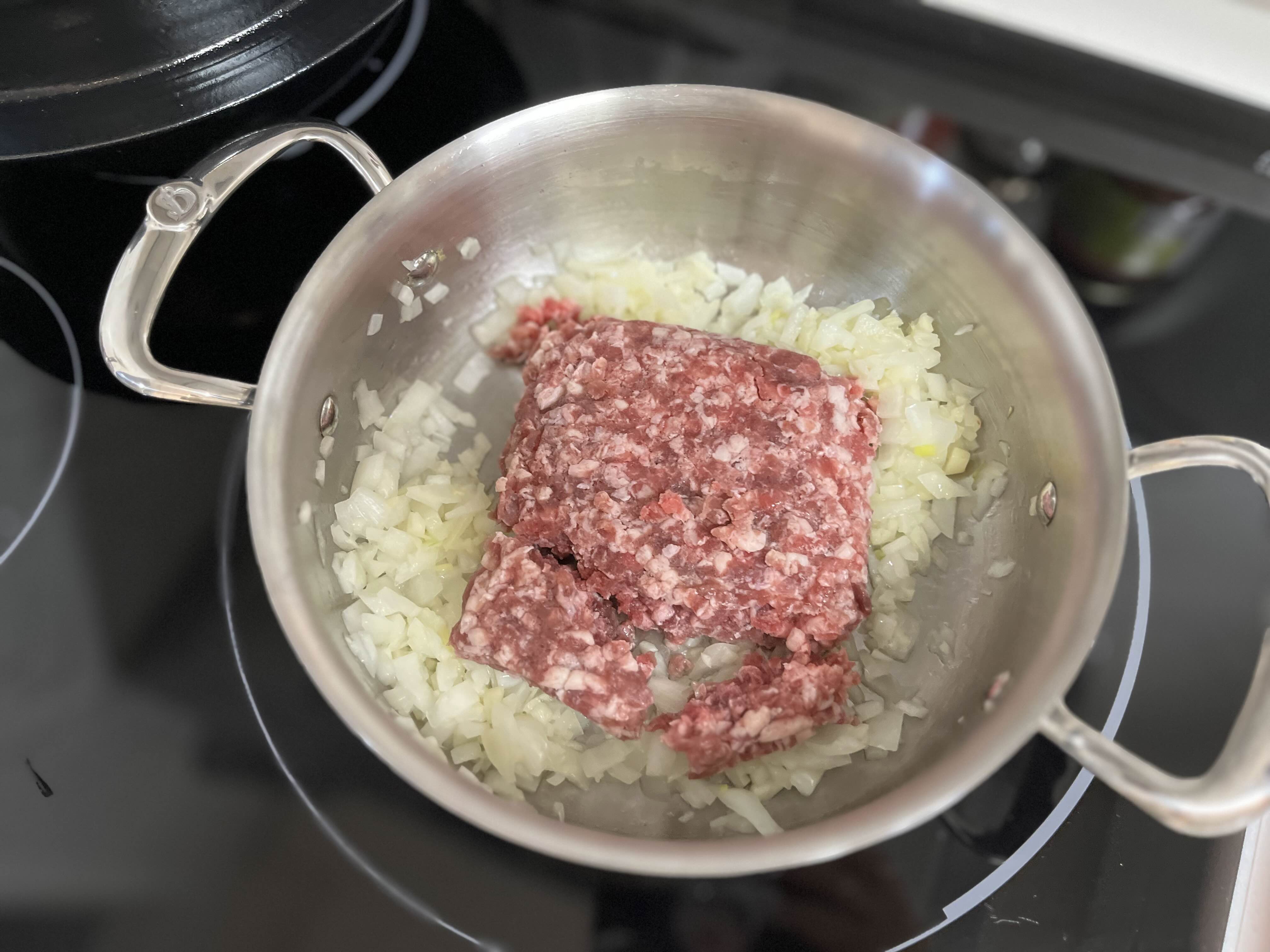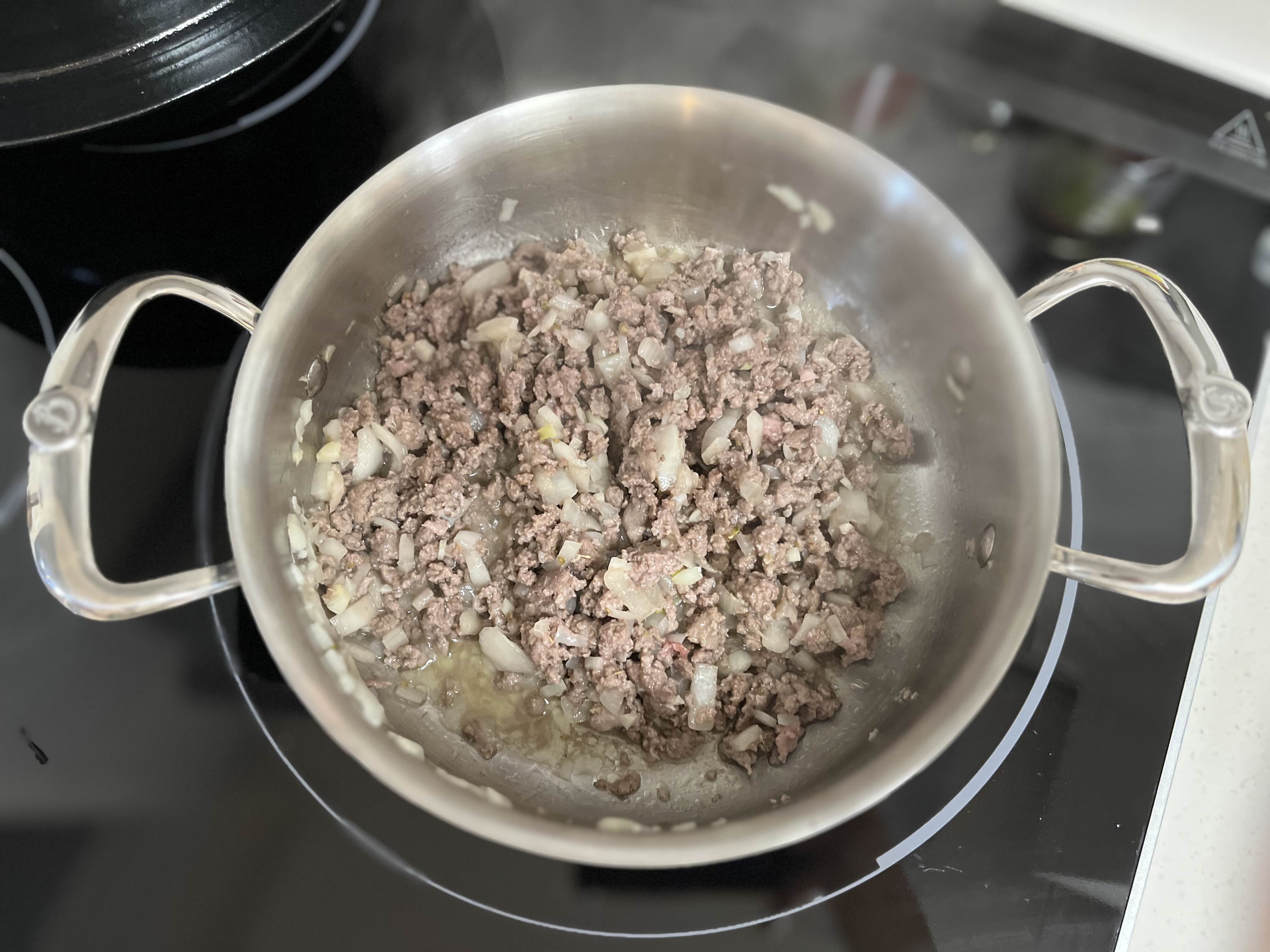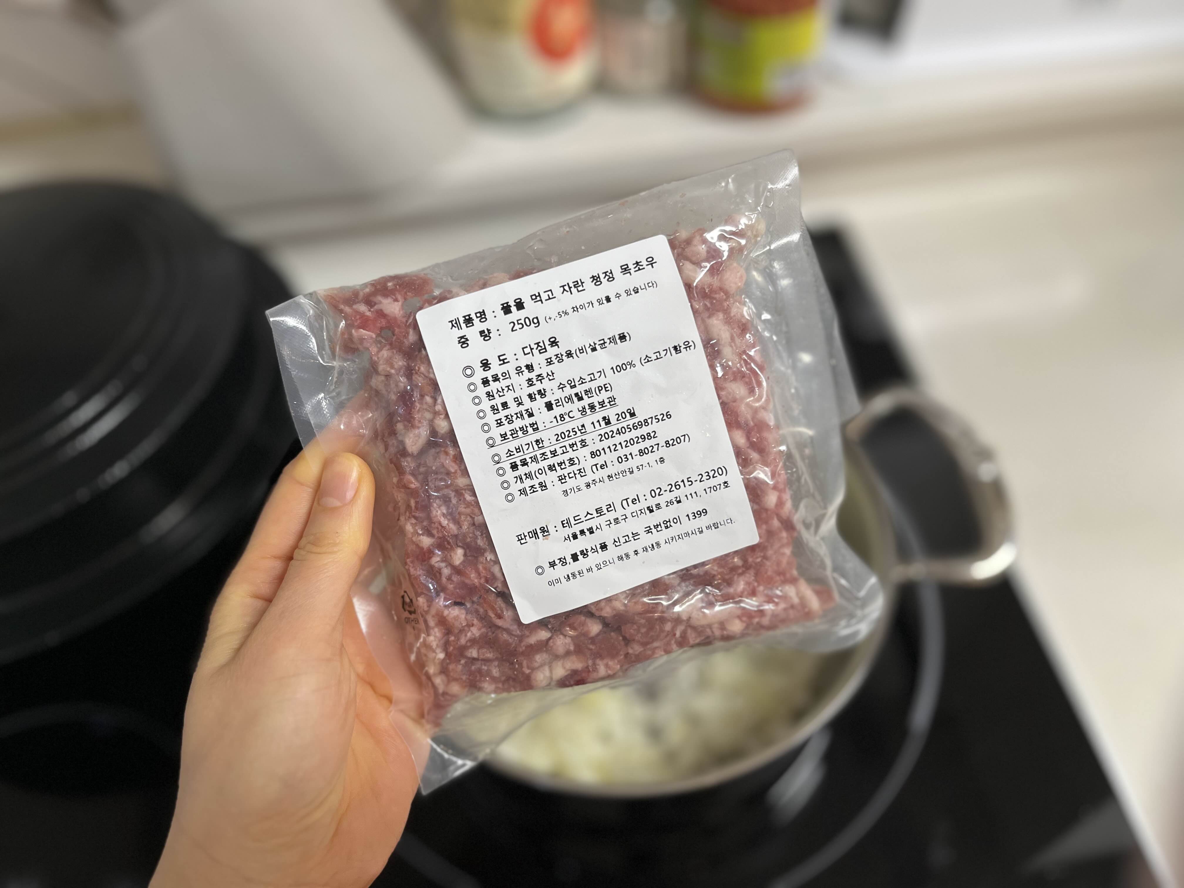 3. 살짝 노릇해지면 목초다짐육 넣고