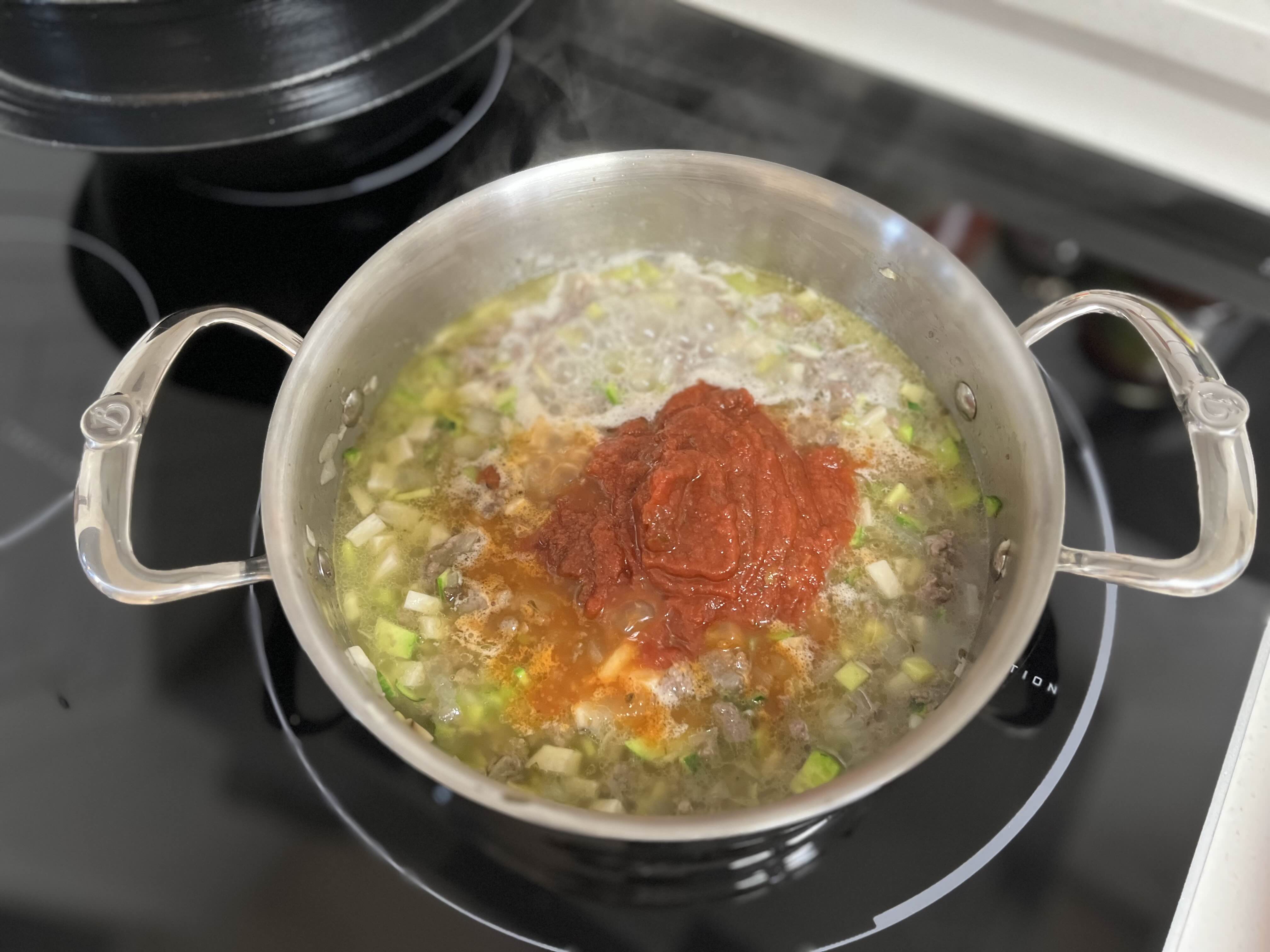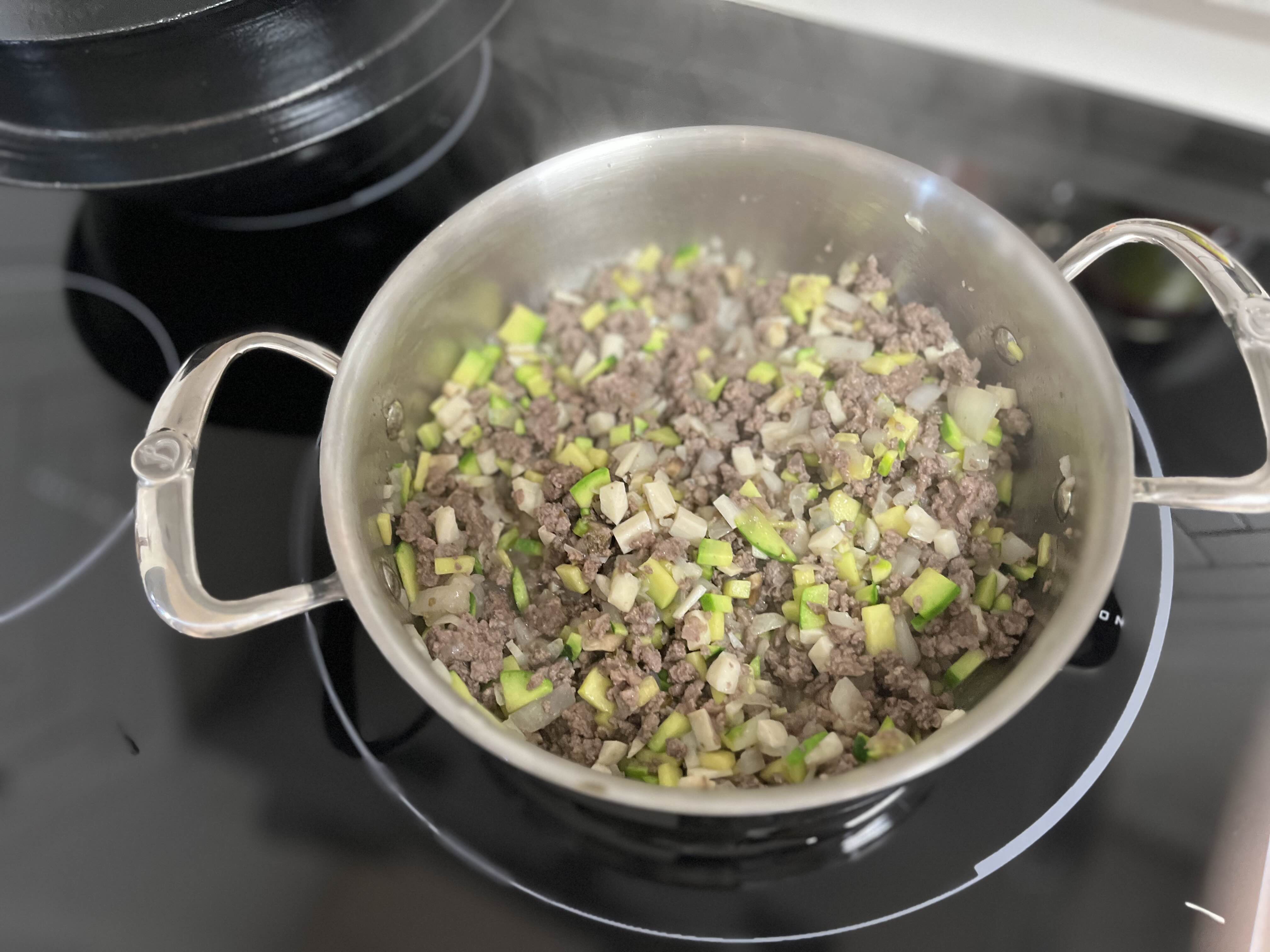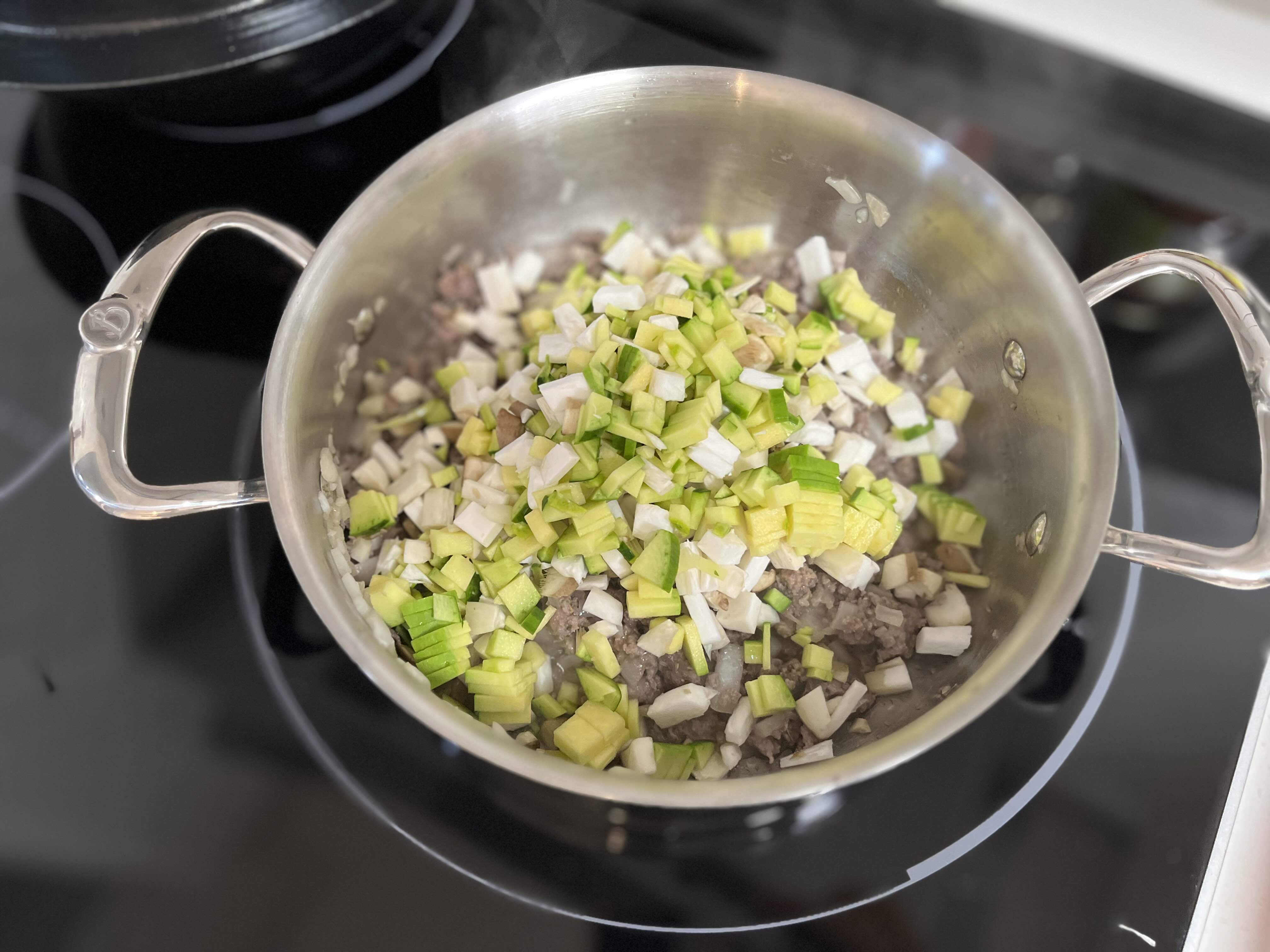 3. 살짝 노릇해지면 목초다짐육 넣고