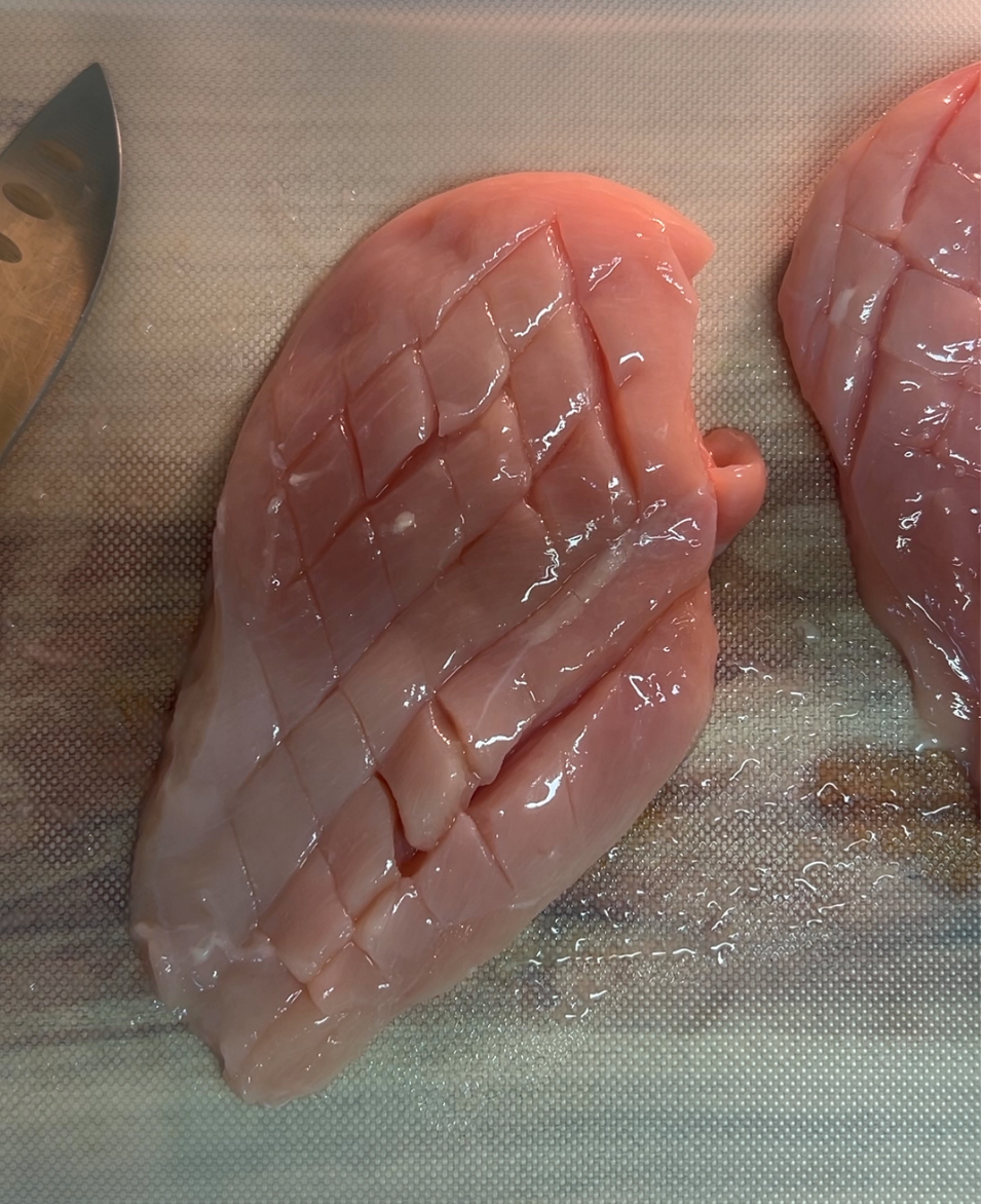 1. 닭가슴살 칼집 내어 소금밑간 해주세요